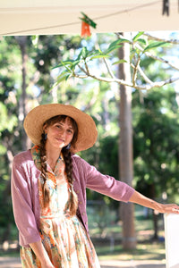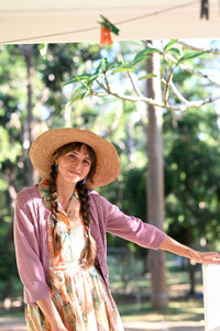 Ava cardigan is one of our all time most popular pieces, now in Dusty Orchid.