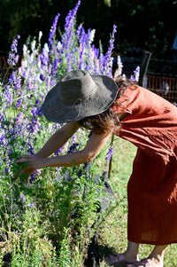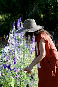 Beautifully woven in Madagascar and designed in Australia, the Aziz hat in Tea is hand woven dyed raffia, adjustable in size with an inner raffia tie and cotton band for comfort.