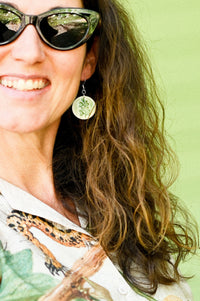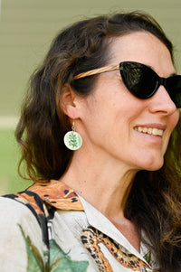 Hand made porcelain earrings with a jade green leaf motif suspended on a sterling silver hook.