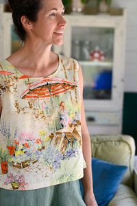 Button through on the back this airy top will pair with linen pants and have you looking as good as you feel.