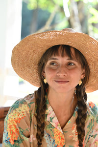 Another sweet offering from Wolf and Clay, porcelain leaf shaped earrings in an yellow colour called Melon. Lightweight and set on a gold plated alloy stud post.