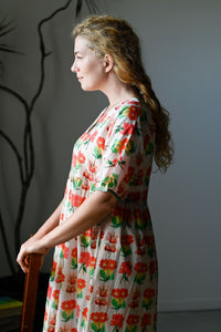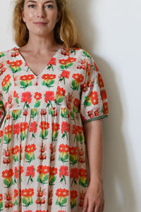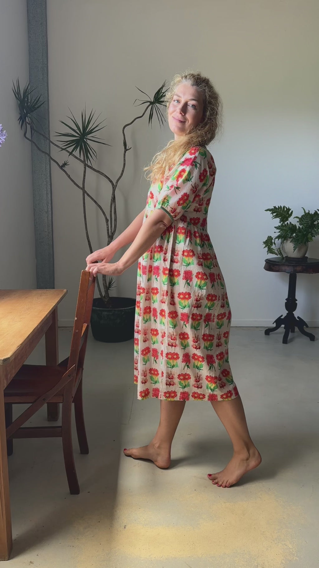 Celia dress is back! Easy wear, cool loose style dress in our new season print Florabelle.