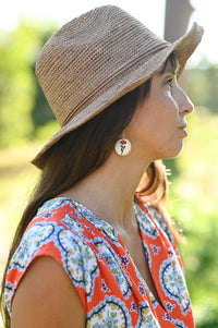 Beautifully woven in Madagascar and designed in Australia, the Elya hat in Light Brown is hand woven dyed raffia, adjustable in size with an inner raffia tie and cotton band for comfort. Wire in the brim allows you to change the shape.