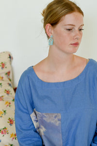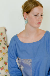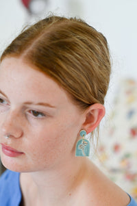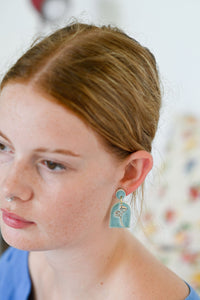 Elegant Esme porcelain earrings come in a pale blue with gold flower detail set on stainless steel stud posts