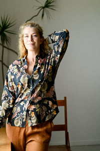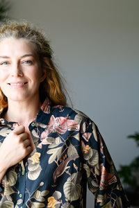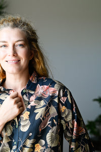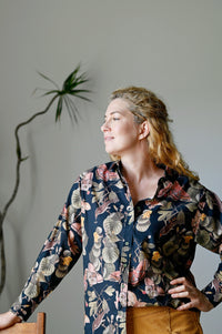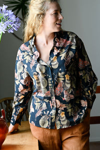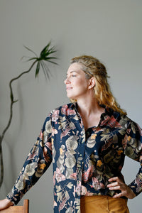 Lauren is our timeless long-sleeve shirt — now available in the beautiful Merian print.