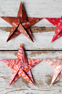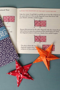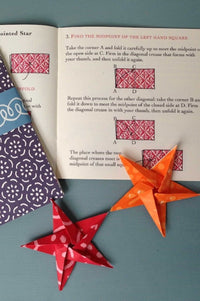 This kit contains everything you need to make 36 double-sided, five-pointed origami stars: 36 different sheets of Cambridge Imprint patterned papers, with a beautifully produced book of instructions, all in a wallet of patterned card.