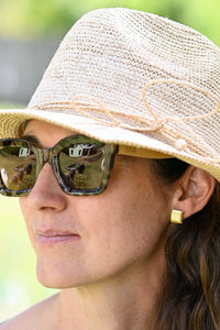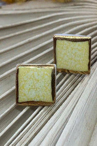Rosalie porcelain earrings are a delicate square style edged with gold and set on stainless steel stud posts. This one has sunny yellow tones.