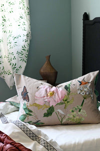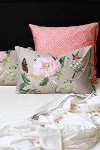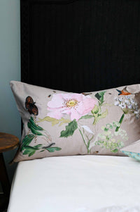 This reversible pillowcase set features an assortment of vintage botanical flower, bird and insect studies arranged on kraft paper coloured background