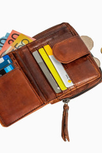 Tina Wallet is made of high-quality wax pull-up leather. Wax pull-up leather is characterised by a soft and supple structure. It will soften more with use.