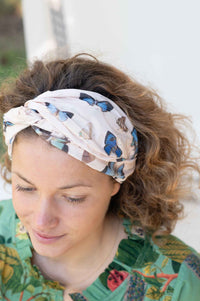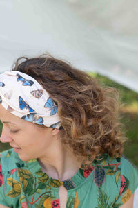 We've used surplus fabrics and new modern vintage prints to create some versatile, useful turban style hair bands.