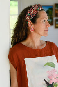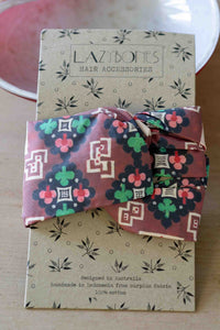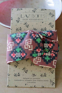 We've used surplus fabrics and new modern vintage prints to create some versatile, useful turban style hair bands.