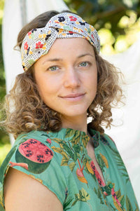 We've used surplus fabrics and new modern vintage prints to create some versatile, useful turban style hair bands.
