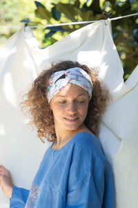 We've used surplus fabrics and new modern vintage prints to create some versatile, useful turban style hair bands.